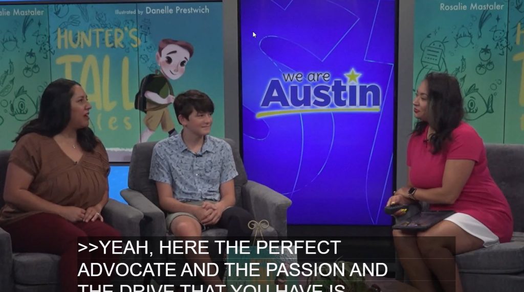 Author Rosalie Mastaler and her son, Hunter, were featured on We Are Austin, to discuss the publication of Hunter’s Tall Tales and how it fits in with Disability Pride Month.